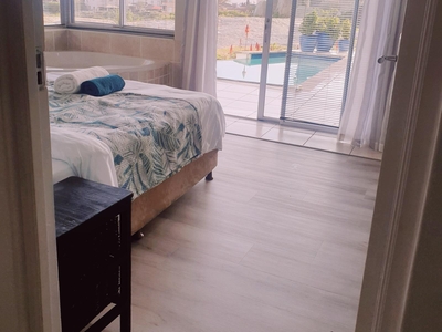 The Deluxe King Unit is fully self catering. It has 2 en- suite bedrooms as well as bathroom amenities. The unit is equipped with a kitchenette, and a bunkbed for kids and a sitting area. It has a beautiful view of the lagoon. Pool in shared space.