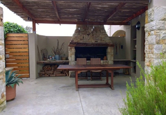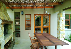 Theebos is a Exclusive Use Holiday Apartment that sleeps two guests and has a bedroom on a mezzanine level with a queen sized bed and ample packing and cupboard space is available. Good quality linen and bath towels are available. The living area is open plan and consists of a comfortable lounge area with a TV, DStv and Wi-Fi. There is a dining table where you can enjoy your home cooked meals and a well equipped kitchen that consists of a fridge, oven, microwave, kettle, toaster, crockery, cutlery, cookware and glassware. Safe parking is available on the property.