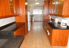 This unit has three bedrooms furnished with a Queen-size bed. There are four bathrooms fitted with a shower, toilet and basin. There is a lounge with a TV and DStv channels, a dining area and a fully fitted kitchen.