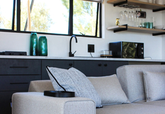 Der Wohnbereich verfügt über ein Doppelschlafsofa. Die voll ausgestattete Küchenzeile zur Selbstverpflegung verfügt über alle Notwendigkeiten, darunter eine Minibar, einen Gasherd und eine Kaffeestation.