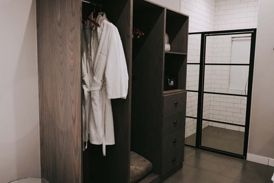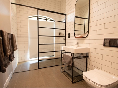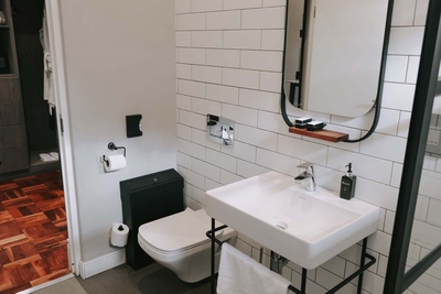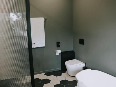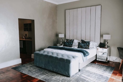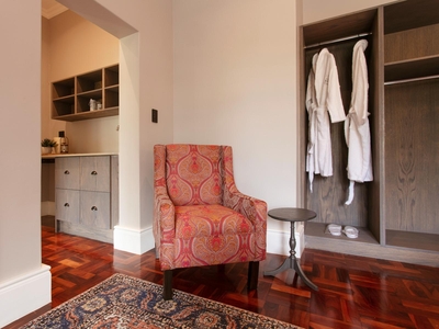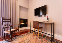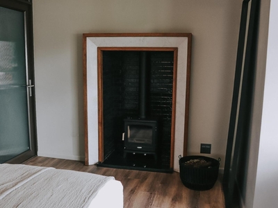 This inviting bedroom is located separately from the main guesthouse, offering both privacy and comfort. It includes an en-suite bathroom with both a shower and a bathtub, perfect for a relaxing soak or a quick rinse. Modern amenities such as Wi-Fi, a TV, and air conditioning ensure a convenient stay, while a cosy fireplace adds warmth and charm on chilly winter evenings. Guests can also enjoy a comfortable sitting area, a refrigerator, coffee and tea facilities, and the peace of mind of a secure safe. The unit is non-smoking and thoughtfully equipped for a restful retreat.