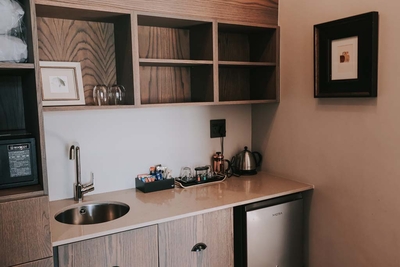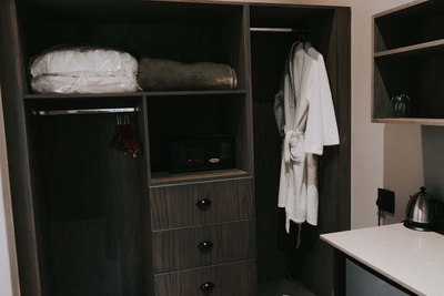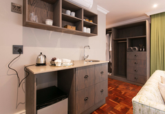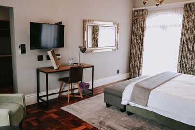 This room contains a king-size bed and has an en-suite bathroom with a shower. The room has a private balcony, and is equipped with air-conditioning, Wi-Fi, a TV with selected DStv channels, and tea- and coffee-making facilities.