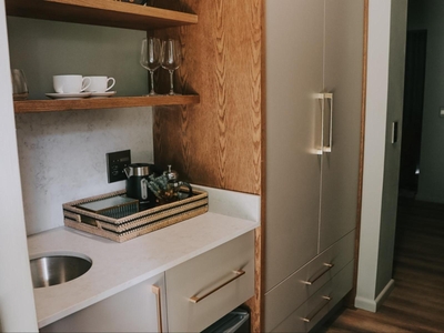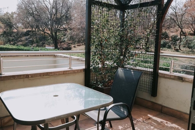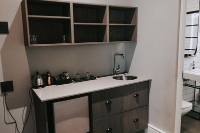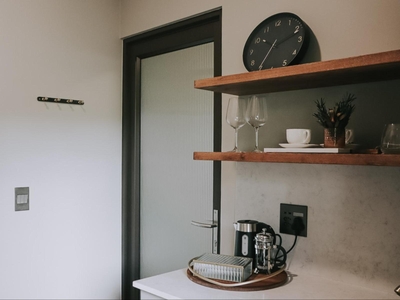 This private bedroom is separate from the main guesthouse, offering added privacy and comfort. It features an en-suite bathroom with a shower, as well as modern conveniences such as Wi-Fi, a TV, and air conditioning. Guests can relax in the sitting area and make use of amenities including a refrigerator, coffee and tea facilities, and a secure safe. The unit is non-smoking and thoughtfully equipped to ensure a comfortable stay.