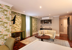 The Presidential Suite features a private balcony with a KolKol Hot Tub, offering a breathtaking view of the garden. Inside, the room includes a comfortable seating area, DStv, and an en-suite bathroom equipped with both a shower and a bath. Complimentary Wi-Fi is provided for convenience. The suite also comes with a range of amenities such as air conditioning, a safe, a refrigerator, coffee and tea facilities, and bathroom amenities. Additional features include a non-smoking environment, TV with satellite channels, and a plunge pool for relaxation.