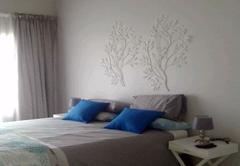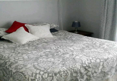 The flat has a fully equipped kitchen with a stove (no oven), laundry, lounge with TV, DStv and blue ray. There is a main bedroom with a Queen-size bed and a second bedroom with two single beds. The main bedroom walks out on its own small garden.