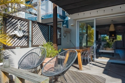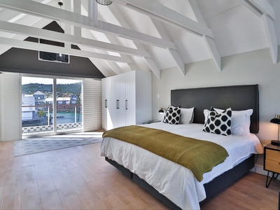 This thoughtfully designed home combines style and functionality. The open-plan layout includes a modern kitchen, a spacious lounge, and a dining area that leads seamlessly to a patio through sliding doors. This outdoor space, equipped with comfortable seating and braai facilities, overlooks the serene canals and provides an ideal spot for alfresco dining or quiet relaxation. The main bedroom boasts a king-size bed, stunning lagoon views, wooden floors, a private balcony, and a full en-suite bathroom with both a bath and a shower. The second bedroom, also featuring a king-size bed, offers canal views, a private balcony, and an en-suite bathroom with a bath and shower. The third bedroom, designed with comfort in mind, is furnished with a single bed and includes an en-suite bathroom with a shower. Each bathroom is fitted with contemporary fixtures for added convenience. The fully equipped kitchen includes a gas stove, an electric oven, a refrigerator, a dishwasher, and tea and coffee-making facilities. The lounge area, complete with a cosy fireplace, plush seating, a TV, and Wi-Fi access, provides a welcoming space to unwind after a day of exploring Knysna.