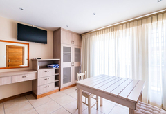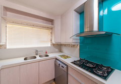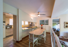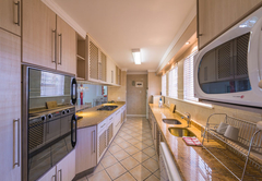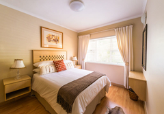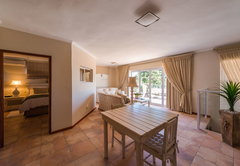 This Villa comprises two bedrooms of which one is en-suite. The other bathroom is separate. There are two beds in an open area which can accommodate an extra two adults or children, however, this is not a bedroom. The first bedroom is furnished with a Queen-size bed and the second bedroom is furnished with a double bed. There is an exceptional kitchen with ample fridge/freezer space and a double oven and gas hob. Lounge and dining area. It has a modern kitchen with serving hatch to a large family dining table which steps down to a lounge looking out onto the sunny garden. The deck leads out from the lounge and there is a separate TV room with a large HD TV with all DStv channels. Use of laundry equipment is available.