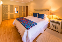 The East Wing is a spacious room with en-suite bathroom. It is furnished with a double bed and the en-suite bathroom is equipped with a shower, hand basins and WC. There is an HD TV with all DStv channels and the bedroom leads out onto a balcony overlooking the ocean. This newly built room on the second storey has TV, Air-conditioning, bar fridge and is very light and roomy with views of the sea. Well designed cupboards and vanities. Plugs for charging with USB plugs.