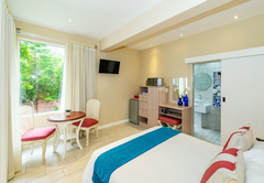The Milkwood Suite is furnished with a Queen-size bed and has an en-suite bathroom equipped with shower, hand basin and WC. TV with full DStv and Free Wi-Fi. This room comprises a compact coffee station with microwave for heating food, small fridge, kettle, toaster and cutlery needed. Please note that this room does not have self-catering facilities.