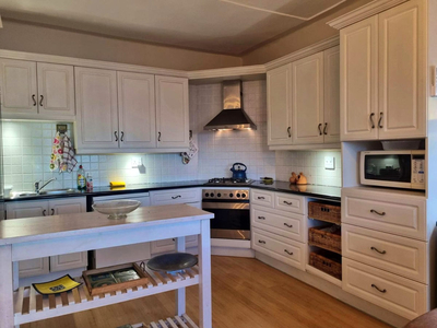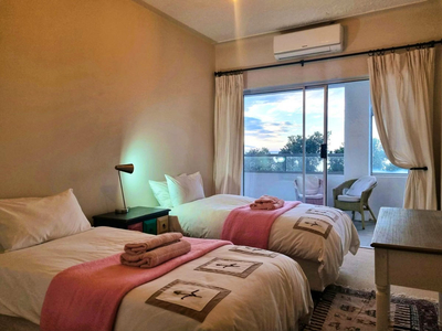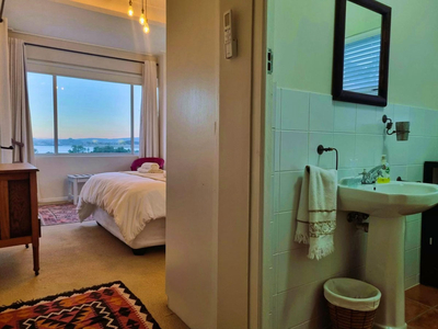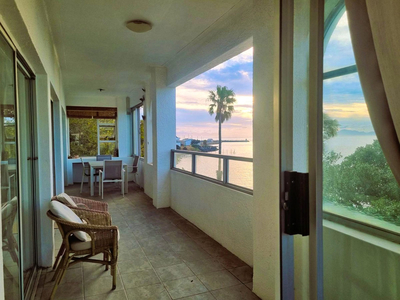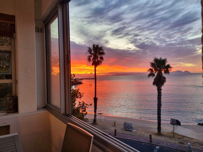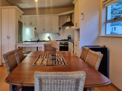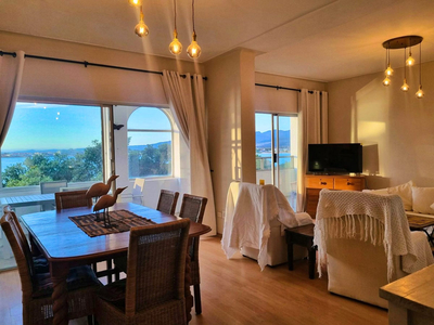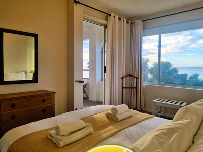 Top Flat @ 121 is a charming seaside apartment situated directly across from Sunset Beach in the harbour town of Gordon’s Bay, Western Cape. Perfect for guests seeking accommodation within close reach of the ocean, this apartment combines comfort with an exceptional location. With three bedrooms and two bathrooms, the apartment comfortably accommodates up to five guests. The main bedroom is furnished with a queen-size bed and includes an en-suite bathroom fitted with a shower-over-bath combination. The second bedroom features two single beds, while the third is arranged with a single bed. A separate guest bathroom, equipped with a walk-in shower, serves the remaining rooms. The open-plan living space includes a dining area and a welcoming lounge, complete with plush seating and a Smart TV for relaxed entertainment. The adjoining kitchen is well-appointed and fully equipped with a fridge, gas stove, oven, and microwave, providing everything needed for a self-catered stay. Throughout the home, guests are treated to uninterrupted sea views, creating a serene and scenic backdrop to their stay. The apartment’s central position places it within easy walking distance of the beach, as well as a variety of nearby shops and restaurants, making it an ideal base from which to explore all that Gordon’s Bay has to offer.