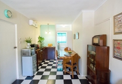 This Classic Family Apartment has an open plan living area with a comfortable lounge and fully equipped kitchen. The 1930's lounge furniture and 1950's kitchen are classic and have been lovingly collected and curated. The apartment has two double bedrooms, each with an en-suite bathroom. The kitchen is fully equipped for full self-catering with a retro full-height, fridge-freezer combination, four plate gas hob and oven, convection microwave, kettle, toaster and all the utensils required. The kitchen table doubles as a workstation where one can settle with a laptop and enjoy the free Wi-Fi Internet access. You will find all the ingredients that you need to prepare a light complimentary breakfast in the food jars.