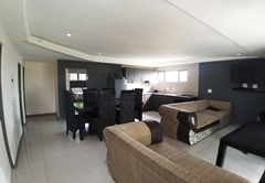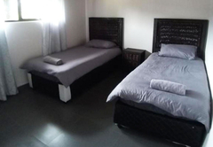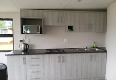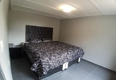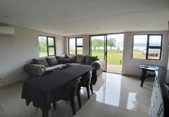 The Three Bedroom Chalet is a superior waterfront chalet with three spacious bedrooms, two are furnished with a King-size bed and one is furnished with two Queen-size beds. There are two bathrooms fitted with a shower, toilet and basin. There is a separate toilet. There is a comfortable open plan lounge, dining area and kitchenette. Outside there is a patio with braai facilities and a breathtaking view of the dam.