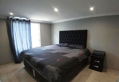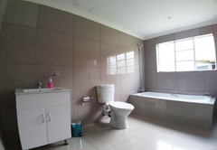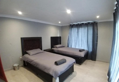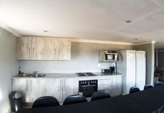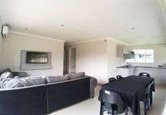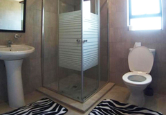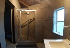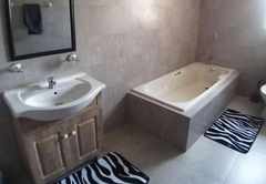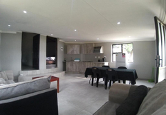 This unique villa has five spacious bedrooms. Rooms one and two are furnished with a Queen-size bed. Room three is furnished with a Queen-size bed and two single beds. Room four is furnished with two single beds. Room five is furnished with a Queen-size bed and a bunk bed. There are four bathrooms 4 bathrooms fitted with either a bath or shower, toilet and basin. The comfortable open plan lounge, dining and kitchen areas open onto a patio with a braai area and a breathtaking view of the dam, complete with a private hot tub.