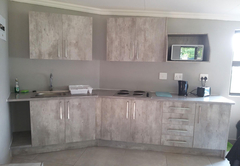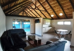 The Two Bedroom Chalet is a modernized waterfront rondavel with two bedrooms, one is furnished with a Queen-size bed and the other is furnished with twin beds. The bathroom is fitted with a shower, toilet and basin. There is a comfortable open plan lounge, dining area and kitchenette. Outside there is a patio with braai facilities and a breathtaking view of the dam.