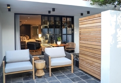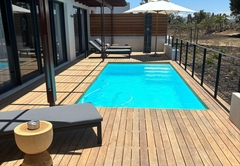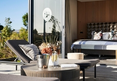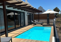 The Vineyard Suite is furnished with a King-size bed that can be converted to twin beds and has an en-suite bathroom fitted with a shower, toilet and basin. Bathroom amenities are provided. The beautifully furnished, air conditioned rooms open to a furnished patio with a plunge pool. Room facilities include Wi-Fi, DStv, NetFlix, tea / coffee facilities, a hairdryer, safe and minibar.