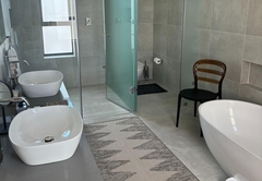 Sleeping arrangements are nothing short of luxurious, with two equally sized en-suite bedrooms featuring extra length king-size beds that can effortlessly transform into twin beds, catering to your personal comfort preferences. The en-suite bathrooms are sanctuaries of relaxation, each equipped with a rejuvenating rain shower, an elegant free-standing bathtub, and double basins. Enclosed toilets, heated towel rails, and underfloor heating add layers of comfort and convenience.