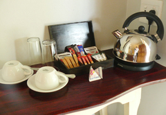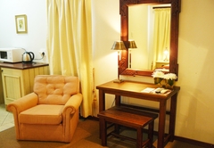 The Family Room is furnished with one double and one single bed. The en-suite bathroom is equipped with a bath, shower, hand basin and WC. Other facilities include air-conditioning, tea and coffee facilities, TV with selected DSTV channels.