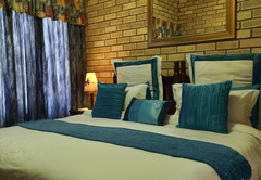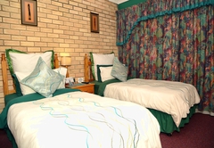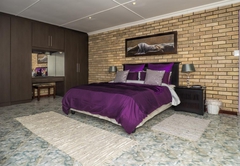 Luxury Queen size bedroom. Often utilized as a Bridal suite. LCD TV, DSTV, and WIFI. Amazing bathroom with free stand bath and separate shower. Room facilities include DStv and Wi-Fi. The bed and breakfast rooms have access to a microwave and fridge. Tea / coffee making facilities are also provided.