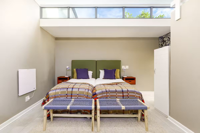 • Bedroom 2 upstairs (sleeps four): Twin bed plus bunk beds sleeping two children with en-suite bathroom equipped with a shower, hand basins and WC.