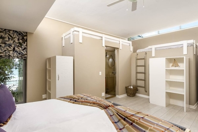 Das zweite Schlafzimmer im Obergeschoss hatte ein Doppelbett und ein Etagenbett. Es gibt ein weiteres Schlafzimmer im Erdgeschoss, das sich zum Pool- und Whirlpoolbereich hin öffnet. Darüber hinaus gibt es auch eine fabelhafte Entertainment-Bereich Sofas, die auch auf den Poolbereich.