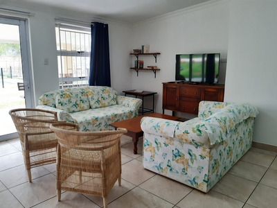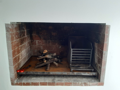 Es gibt einen Wohnbereich mit offenem Schnitt mit einem eingebauten Kamin / Grill im Innenbereich und einem TV mit dSTv-Kanälen und WLAN.