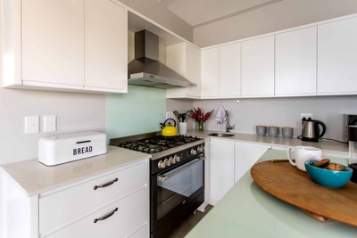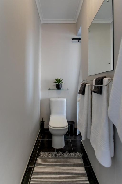 The open-plan living, dining, and kitchen areas exude contemporary sophistication, seamlessly connecting to a spacious wooden deck. This outdoor haven is perfect for al fresco dining, offering a stunning backdrop of the ocean. On the lower level, a pool table adds a touch of entertainment and fun. The gentle sea breeze flows through the home, enhancing the serene atmosphere, while the close proximity to local shops provides convenience without disturbing the peace of this coastal retreat. The upstairs master bedroom, a true epitome of elegance, features a Victorian-style bathtub as its centerpiece, creating a romantic retreat for two. Another upstairs bedroom also accommodates two guests and includes a private ensuite bathroom. The additional two bedrooms, equipped with bunk beds and a single bed each, can comfortably host up to three guests each, making it an ideal haven for families and friends. Every detail in this luxurious residence is meticulously designed to enhance the breathtaking views and offer an unforgettable experience of seaside opulence.