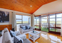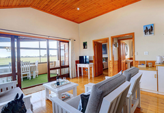 Es gibt eine voll ausgestattete Küche mit Kühlschrank, Herd, Backofen und Mikrowelle. Die Lounge ist komfortabel eingerichtet, verfügt über Sat-TV und WLAN. Auf der geschlossenen Terrasse befindet sich ein Essbereich. Die Terrasse bietet Blick auf den schönen Damm und die Outeniqua-Berge.
