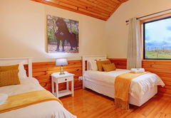 Das Wernich Landgoed Freesian Cottage in Glentana bietet Platz für vier Gäste. Es gibt zwei Schlafzimmer, eines ist mit einem Queensize-Bett ausgestattet und das zweite Zimmer ist mit zwei Einzelbetten ausgestattet. Das Badezimmer ist mit einer Dusche, einem Handwaschbecken und einem WC ausgestattet. Kostenlose Toilettenartikel sind vorhanden.