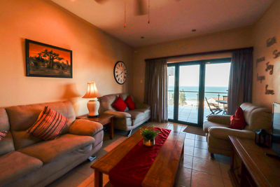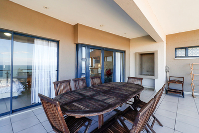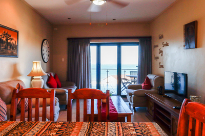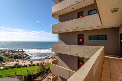 Large sliding doors open from the living area onto a spacious balcony furnished with outdoor seating, providing the perfect setting to take in the uninterrupted sea views. Guests also have access to communal amenities including a swimming pool and braai facilities. Secure parking is provided for one vehicle.