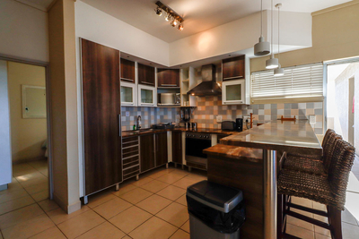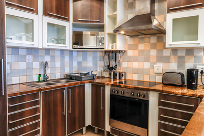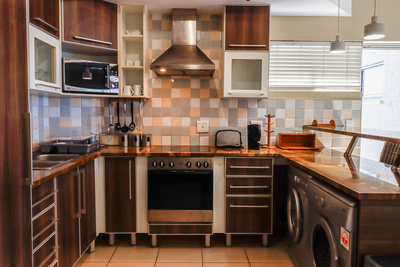 Die Küche des Apartments ist komplett ausgestattet und bietet Ihnen alles für die Selbstverpflegung. Sie verfügt über Herd, Backofen, Mikrowelle, Wasserkocher, Toaster und Kühl-/Gefrierkombination sowie ausreichend Besteck und Geschirr. Zur weiteren Ausstattung gehören eine Waschmaschine, ein Wäschetrockner und eine Frühstücksbar mit Hockern. Der offene Wohn- und Essbereich bietet einen gemütlichen Platz zum Entspannen oder gemeinsamen Essen und verfügt über einen Fernseher für Unterhaltung.
