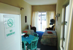 The Galjoen Room has no sea view. It is an en-suite room furnished with three single beds, two together plus one separate. The en-suite bathroom is equipped with a shower, hand basin and WC. There is a small fridge, tea and coffee making facilities, microwave, TV with DSTV with own smart-card in the room. We offer breakfast at an additional rate per person with special breakfast rates for small children.