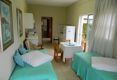 Mom's Place is a family unit offers self-catering facilities and a limited sea view. The unit has a living room with two single beds and an en-suite bedroom furnished a double bed. The living room has easy chairs and a TV, DSTV decoder and smart card, along with a fully-equipped kitchenette area with table and chairs for dining. Private braai (BBQ). We offer breakfast at an additional rate per person with special breakfast rates for small children.