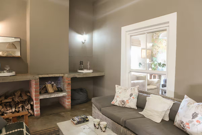 Der Wohnbereich ist geräumig, komfortabel und hat einen Fernseher mit Satellitenkanälen. Es wird auch kostenloses Wi-Fi zur Verfügung gestellt. Der Kamin bietet einen gemütlichen, warmen Ort zum Entspannen im Winter.