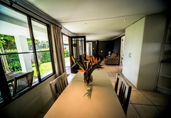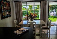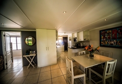 Es gibt eine voll ausgestattete Küche mit Kühlschrank/Gefrierschrank, Herd und Ofenoberteil, Mikrowelle und Geschirrspüler. Der offene Essbereich und eine bequeme Lounge haben einen Holzofen, einen Fernseher mit DSTV und Wi-Fi.