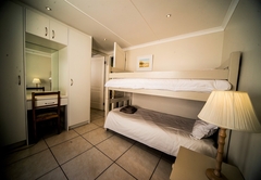 Wild Olive @ High Season is a self catering holiday cottage in Hermanus sleeping four guests and is ideal for a young family. The main bedroom is furnished with a King-size bed and an en-suite bathroom fitted with a shower, toilet and basin. The second bedroom is ideally set up for young children and is furnished with two bunk beds and an en-suite bathroom fitted with a shower, bath, toilet and basin. There is a fully equipped kitchen containing a fridge/freezer, stove and oven top, microwave and dishwasher. The open plan dining area and comfortable lounge have a wood burning stove, a TV with DSTV and Wi-fi. Outside there is a built-in braai area with seating overlooking the mountains. Housekeeping available at extra charge.