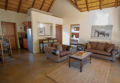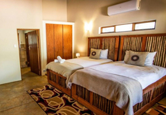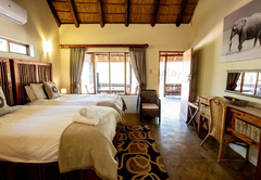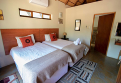 Wildways Bush Camp has three fully equipped, two bedroom and two bathroom self-catering chalets. Each Chalet as two air-conditioned bedrooms furnished with twin beds (crisp linen and soft towels provided) with ample cupboard space. The main en-suite bathroom is fitted with a bath, toilet and basin. The second bathroom is fitted with a shower, toilet and basin. The chalets have hot running water, a comfortable lounge, a kitchen equipped with a stove and oven, microwave oven, fridge, kettle, cutlery, crockery and breakfast nook. Each chalet has its own private Boma braai area where intimate meals can be enjoyed next to the fire under the stars, or on a large shaded and furnished veranda with a view of the bush. All braai utensils are provided. Firewood is for sale at the camp.