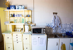 BakOond is a one-bedroom farm style cottage sleeping two guests. The bedroom is furnished with two single beds. The bathroom is fitted with a bath, shower, toilet and basin. The open plan sitting room and kitchen has an indoor braai, a bar fridge, microwave, hot plate, kettle, toaster, crockery and cutlery. Outside there is a patio with a bench where you can sit and look and relax. The unit is dog friendly by arrangement.