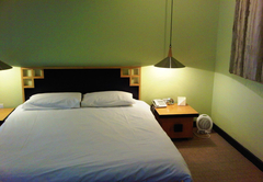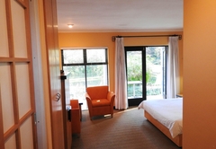 Double Room, 1x Double bed. Orange Room. Private entrance and view of Garden Lake. Bar Fridge, TV, complimentary tea, coffee and rusks. En-suite bathroom with hand shower and heated towel rail. Complimentary basic amenities supplied. Hair dryer and safe.