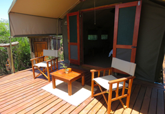 Families are able to enjoy the African bush together with the two tents adjoining on the balcony.Parents enjoy the privacy while knowing the children are not far away.The main canvas safari tent has an en-suite basin, shower and a separate private toilet