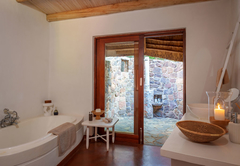 The Deluxe Room is a double en-suite room furnished with twin / two single beds and with an en-suite bathroom with large bath and outdoor showers. The rooms are offered on a self catering basis although a continental breakfast and a game drive are included in your stay.
