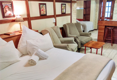 Cornerhouse on Conan verfügt über elf luxuriöse Zimmer mit eigenem Bad, DSTV (12 Kanäle), WLAN, Klimaanlage, Haartrockner und Kaffee / Tee. Wir können die größere Person auch unterbringen. Die sieben Selbstversorger-Einheiten sind komplett ausgestattet.