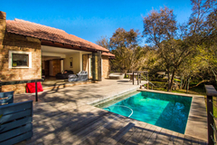 Das Barbet Studio ist ein offenes Studio-Apartment für zwei Gäste. Das Studio ist aus Ziegelsteinen gebaut und verfügt über große Schiebetüren und Fenster, die getrennt voneinander inmitten des natürlichen Busches liegen. Jedes ist von einer spektakulären Aussicht umgeben. Draußen gibt es eine Terrasse mit Grillmöglichkeiten. Es gibt einen Swimmingpool mit Lapa-Bereich in einer wunderschönen