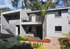 Madison Palms 28 ist eine Ferienwohnung für Selbstversorger in Sandown für zwei Gäste. Das Studio ist mit einem Queen-Size-Bett ausgestattet. Es gibt einen gemütlichen Loungebereich mit TV, WLAN und einem Esstisch, an dem Sie Ihre Mahlzeiten genießen können. Draußen ist eine Terrasse mit einem Tisch und