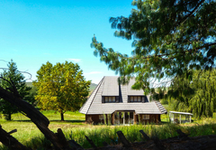 Die Splashy Fen Log Cabin ist eine schrullige und rustikale Hütte mit Betten und Zeltplatz in einem abgelegenen Bereich ganz oben auf dem Festivalgelände. Das in sich geschlossene Gebiet ist mit Flechtwerk-Setzlingen eingezäunt und bietet einen Panoramablick auf das umliegende Ackerland, das vom Bamboo Mountain beherrscht wird. Der Standort besteht aus einem Blockhaus
