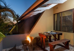 Die Einheit ist klimatisiert und mit einem Queensize-Bett, einem Doppelbett und einem Einzelbett ausgestattet. Die Küche ist komplett für die Selbstversorgung ausgestattet. Es gibt auch einen Essbereich, in dem Gäste ihre Mahlzeiten genießen können, sowie einen Fernseher mit DStv. Draußen gibt es eine Terrasse mit Gartenmöbeln und Grillmöglichkeiten. Den Gästen stehen alle