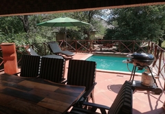 Die Villa liegt am ruhigen Ufer des Sabi-Flusses und bietet bequem Platz für bis zu acht Gäste in vier gut ausgestatteten, klimatisierten Schlafzimmern, jedes mit eigenem Bad. Der Wohnbereich erstreckt sich bis zu einer überdachten Terrasse mit einem Esstisch im Freien, einem gemütlichen Loungebereich und Grillmöglichkeiten. Von der Terrasse aus führen einige Schritte zu einer Holzterrasse mit einem beheizten Swimmingpool.