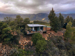 Bergsicht Outpost Cottage Three bietet einen eleganten, modernen Rückzugsort auf einem ertragreichen Obstbauernhof, nur 8 Kilometer von der historischen Stadt Tulbagh entfernt. Umgeben von blühenden Weinbergen und einem atemberaubenden Bergpanorama verspricht diese elegante und durchdacht gestaltete Unterkunft Ruhe und ist somit der ideale Rückzugsort für